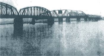鴨緑江大橋。新義州、中国満州にかかる大橋、約1.5キロメートル、日本時代に施工。この江は白魚が生息して一時は名物になり汽車弁当で名をはせた時代もあり、それと同時に鴨緑江節も唄われた時代もあったが、この大橋は朝鮮戦争で破壊されてしまった。今は復旧されているらしい。